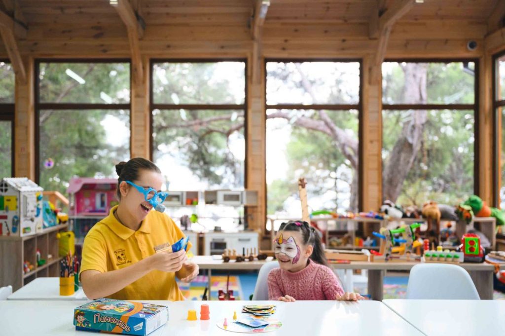 01.04-30.11 Детская зона на пляже и в бассейнах, программы для детей от 4 до 12 лет. Услуги тренера по плаванию, теннису, бегу и гимнастике. Услуги няни. Открытые игровые площадки. Мультклуб и вилла «Курица». Детские принадлежности и аксессуары. Детское меню. Детская анимация: детские шоу и представления, творческие мастер-классы и квесты. интерактивные игры, спортивные турниры. Принимаются любого возраста, до 12 лет — со скидками на доп местах. От 18 000 руб.