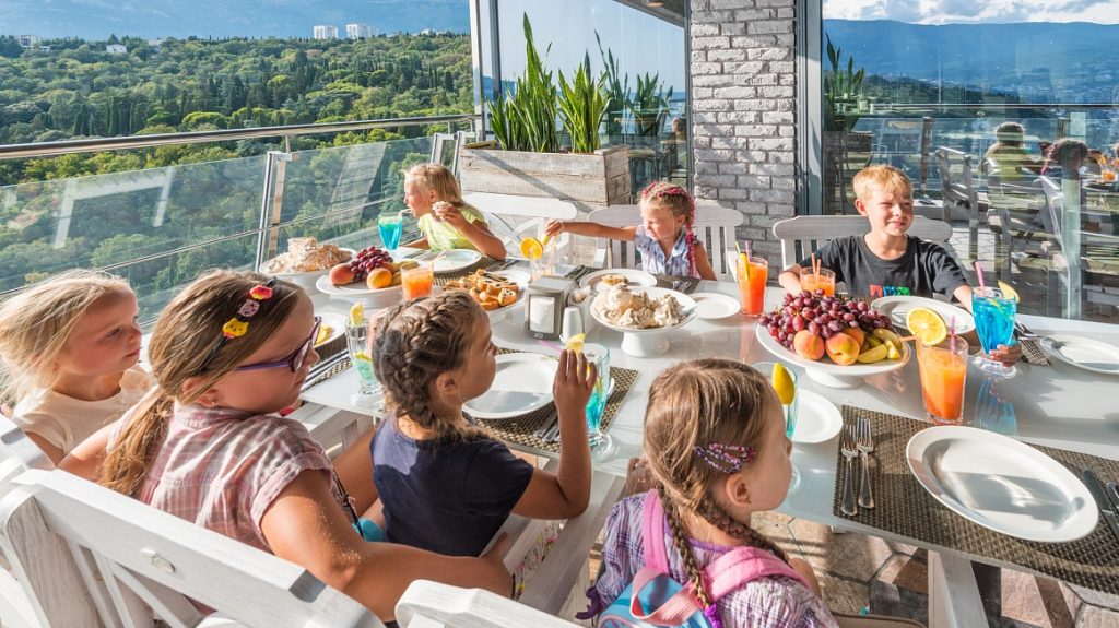 Круглогодично Детская комната с опытными воспитателями: настольные игры, игровые автоматы, площадка для активностей и др. Ежегодно 01.06 открывается дополнительная детская развлекательная зона на пляже. Библиотека. Кинотеатр. Детская зона в бассейне, уроки плавания. Анимационные программы, мастер-классы по рисованию, рукоделию, танцам, кулинарии. Базовые лечебные программы для детей от 5 до 18 лет. «Детский стол» на «шведской линии». Дети принимаются любого возраста, до 4 лет включительно — бесплатно без предоставления места, до 12 лет включительно — со скидками на доп местах.