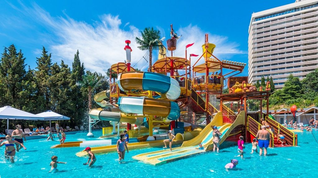 Детская инфраструктура: детский бассейн с аттракционами и бассейн «для самых маленьких»; зоопарк, анимация для детей круглогодично, аквапарк для детей (с 01.06 по 30.09), детская площадка на пляже, детский центр «Умка» (за доп. плату), спортивные игры (футбол, волейбол, теннис и другие), батуты и скалодром, Веревочный парк, Аттракционы виртуальной реальности, Подростковый центр «Антикафе для зумеров». Детская комната, детские халатики в бассейн.