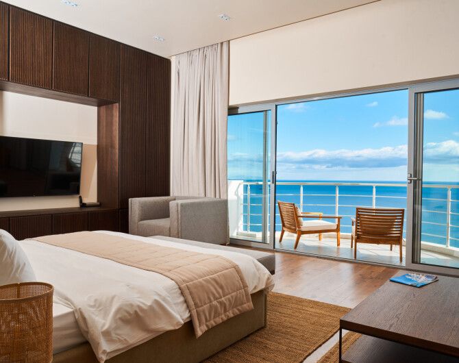 Двухкомнатный номер общей площадью 44-52 м². Вид из окна — на море или бассейн. Номер с балконом. Ванная комната с ванной или душевой кабиной. В номере одна двуспальная или две односпальные кровати. Доп место — раскладное кресло или диван.
