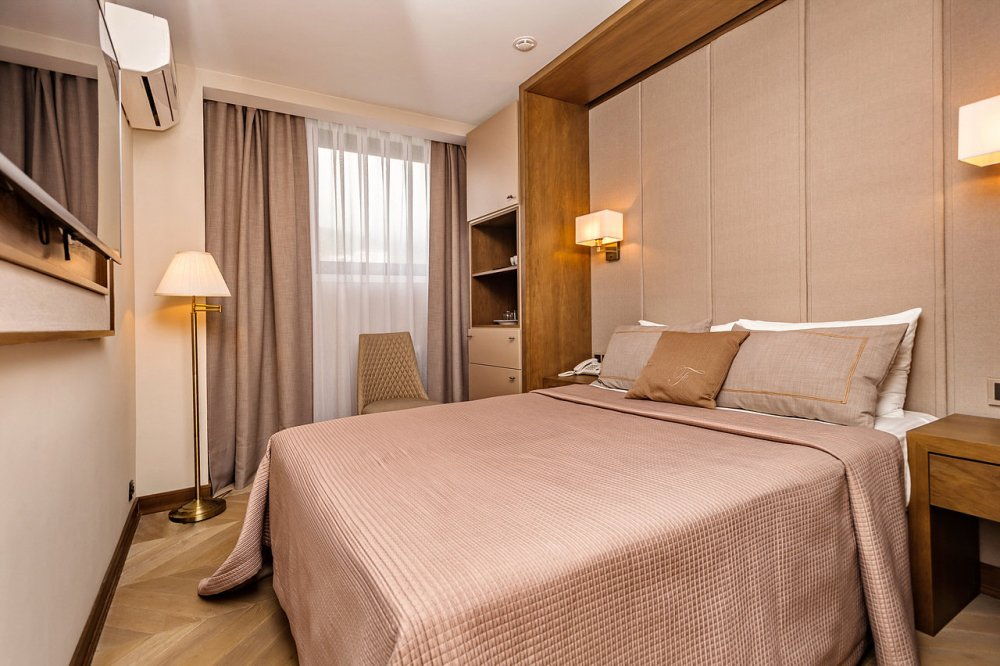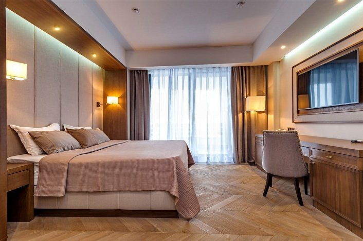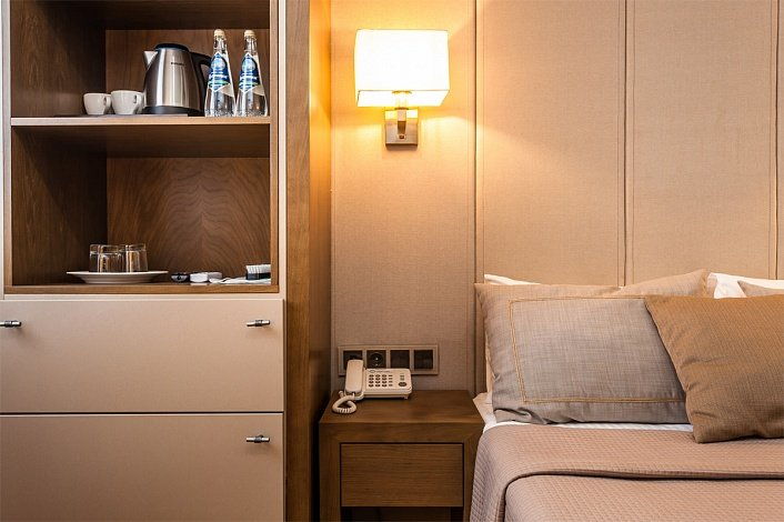 Каждый номер оборудован кондиционером, современным плазменным телевизором, качественной мебелью, а классический стиль интерьера подарит каждому Гостю ощущение простора и уюта.