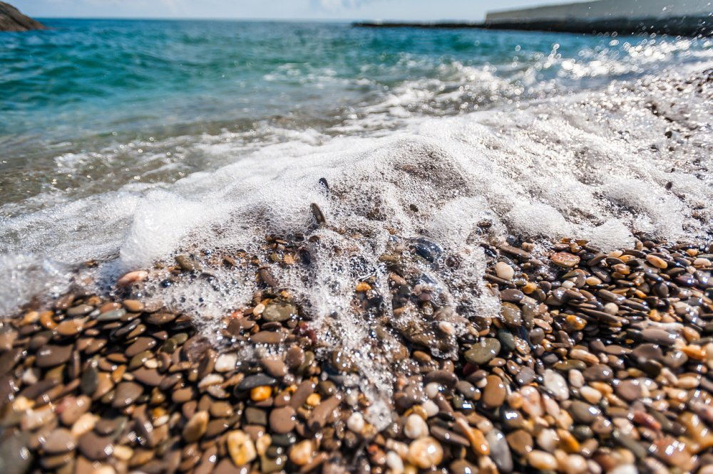 в 10 – 100 м от корпусов — собственный галечный пляж отеля протяженностью 200м, оборудован теневыми зонами, лежаками, раздевалками, душевыми кабинами, туалетами. Есть медпункт и спасательный пост.