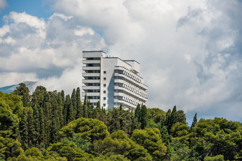 (14-этажный, лифты) построен в 1986 г. В корпусе: рецепшн, лобби-бар, кафе, крытый бассейн с морской водой, лечебная база, с 5-го по 14-ый этажи — номерной фонд (210 номеров разной категории) .