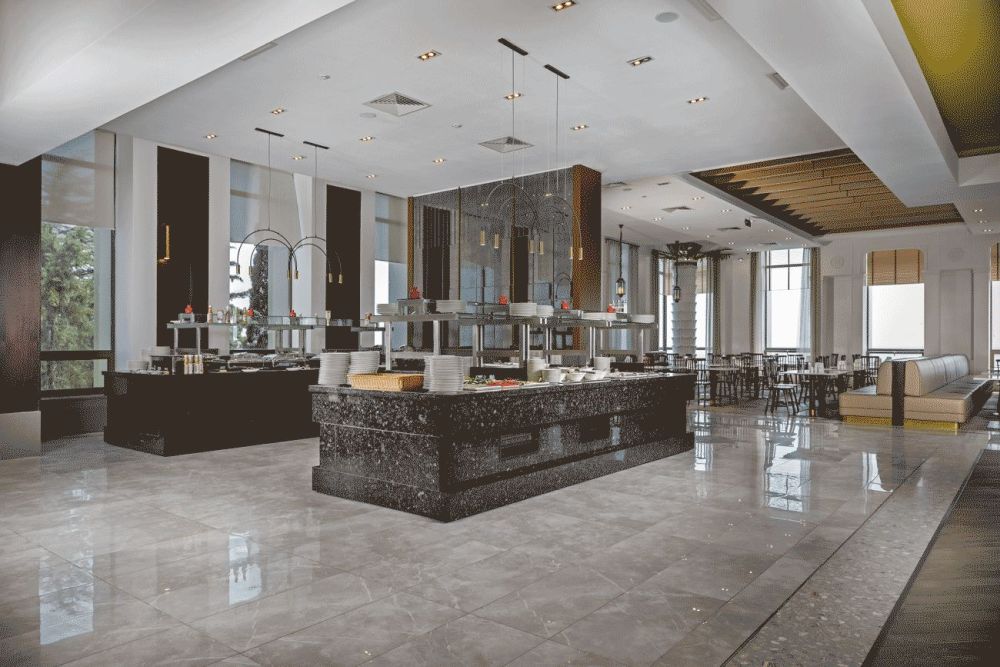питание по системе «шведский стол», в ресторане санатория, рассчитанном на 400 мест.