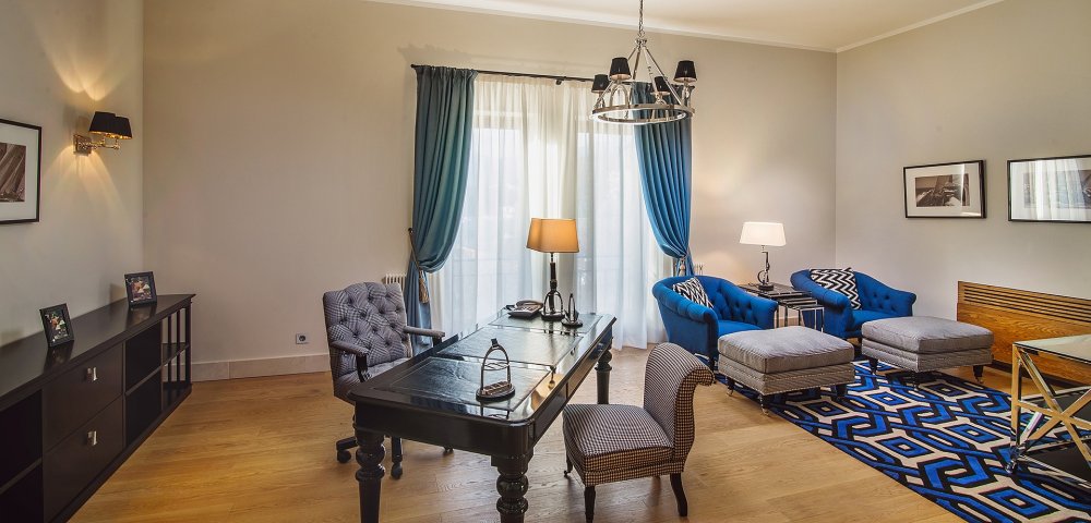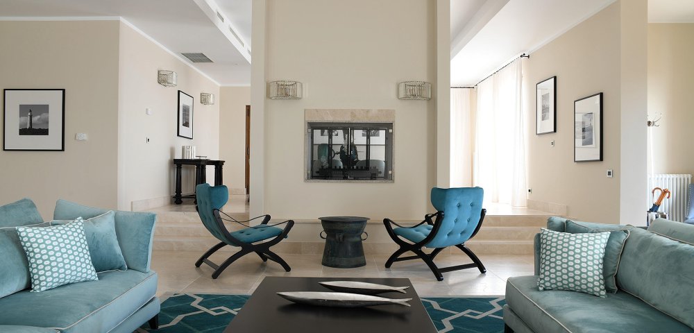 Двухэтажная вилла «Чайка» – отдельно стоящая вилла с террасой и открытым подогреваемым бассейном с пресной водой. Архитектурная композиция здания состоит из двух зеркально повторяющих друг друга корпусов. Утончённый дизайн виллы выполнен в пастельных тонах с акцентами на голубых и синих оттенках и текстилем светло-оливкового цвета.