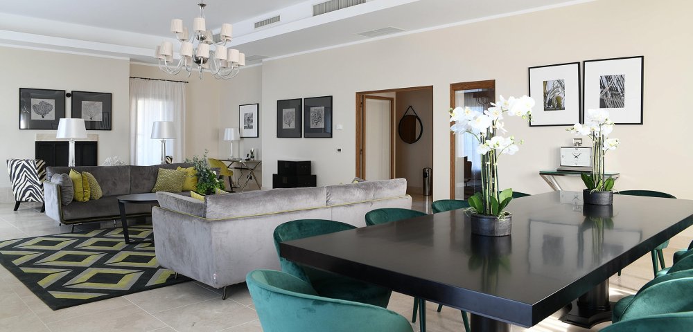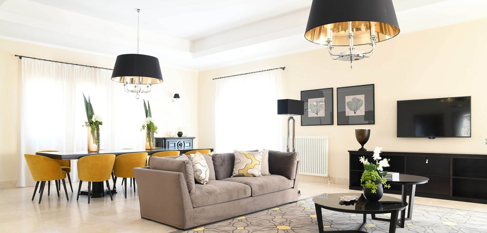 Все виллы с просторными холлами, уютными большими гостиными, светлыми столовыми, современными кухнями. Спальни с 2-спальными и раздельными кроватями. Есть даже кабинеты для тех, кто и на отдыхе продолжает заниматься делами. Виллы оснащены всем необходимым: от системы климат контроля, плазменных телевизоров, кухонного оборудования до фенов в каждой ванной.