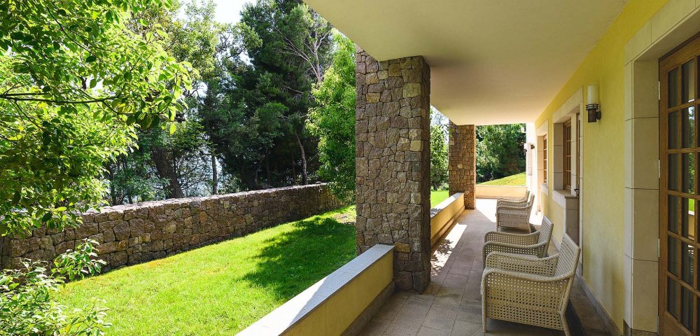 На нижнем этаже расположены четыре просторные спальни с отдельными мраморными ванными комнатами. Из каждой спальни имеется выход на террасу и парк.