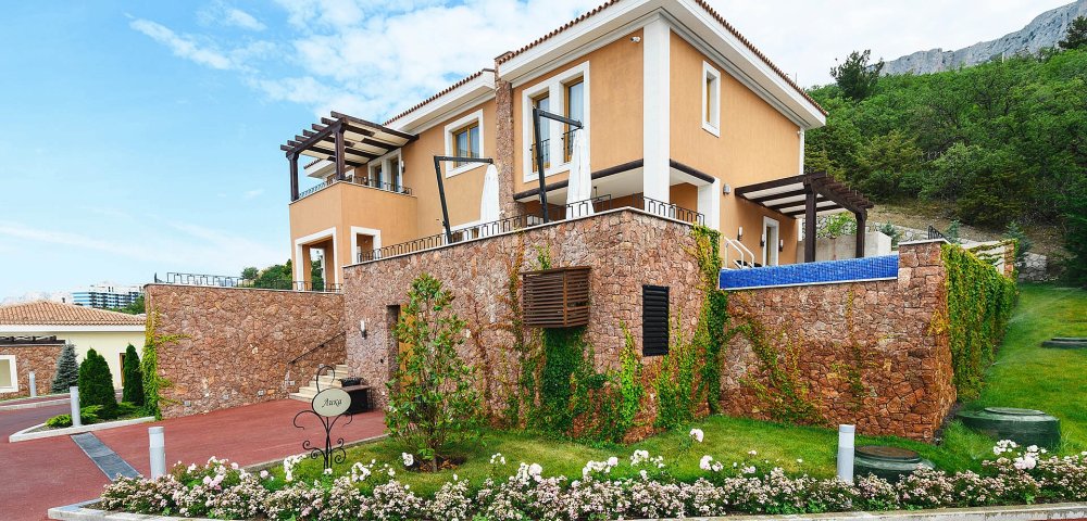 Многофункциональный комплекс, ориентированный на обслуживание групп корпоративного и делового туризма. Ключевая особенность виллы — пять соединенных между собой зданий, образующих пятиуровневый архитектурный ансамбль. Главным преимуществом виллы, кроме ее структуры, является ценовая лояльность, при которой гости пользуются всеми возможностями Отеля 5*.