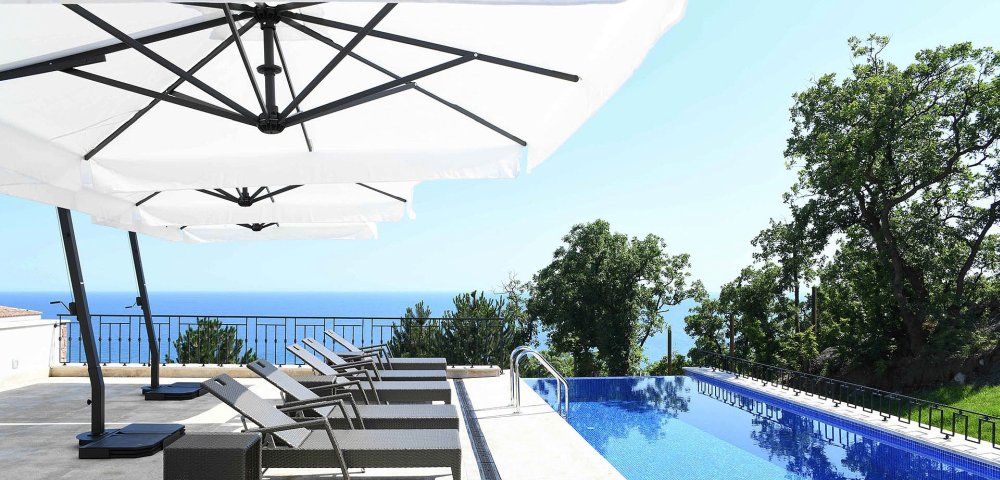Двухэтажные виллы расположены в комплексе вилл «Вишнёвый сад». На вилле имеются две просторные террасы с великолепными видами на море, на одной из которых – комфортабельная зона отдыха, на другой – открытый бассейн с подогреваемой морской водой.