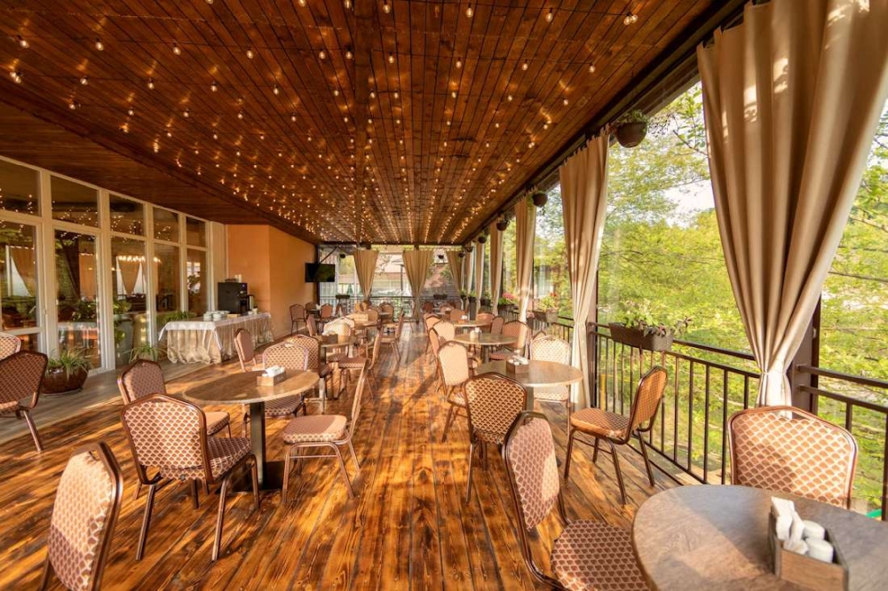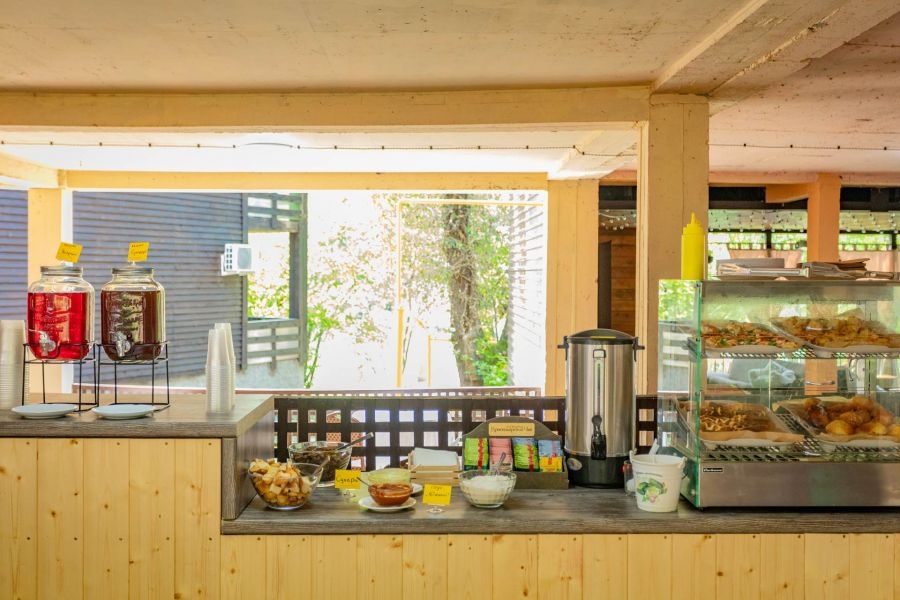 Полный пансион, в период с 22.05 по 31.10 — по системе «шведский стол» в обеденном зале столовой, промежуточные станции питания (выпечка, пицца, гриль, пиво). Дегустация вин и крепких напитков местного производства во время ужина. Кафе с летней верандой и зоной отдыха у бассейна. При загрузке менее 20 человек услуги питания предоставляются по заказному меню. В период 01.05-21.05 работает на базе завтраков (континентальный).