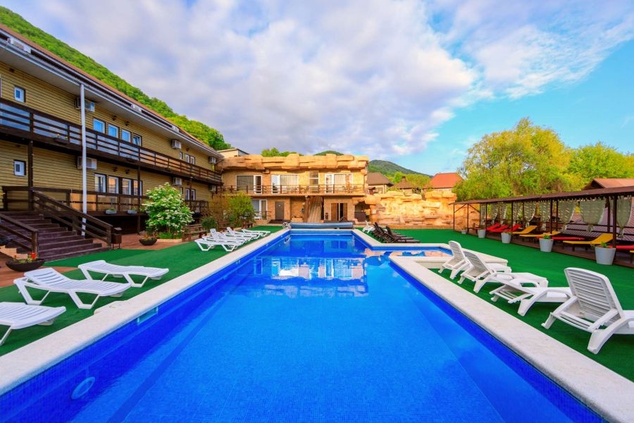 Парк-отель расположен в 1200 метрах от моря, работает по системе «Все включено», на территории три открытых бассейна. Номер реестровой записи в ЕРОКСТИ С232024012167