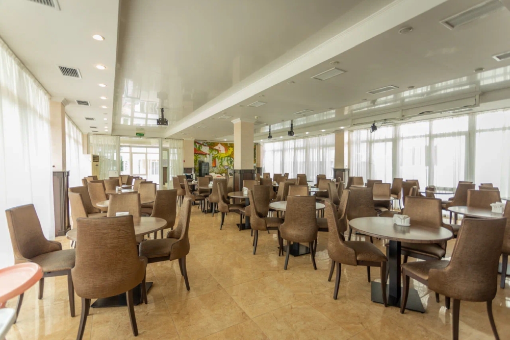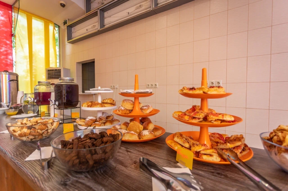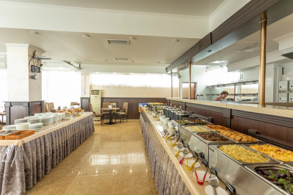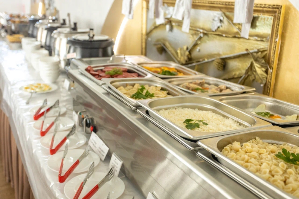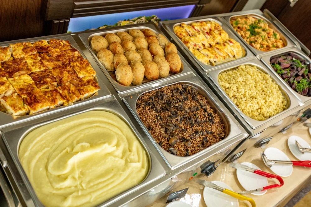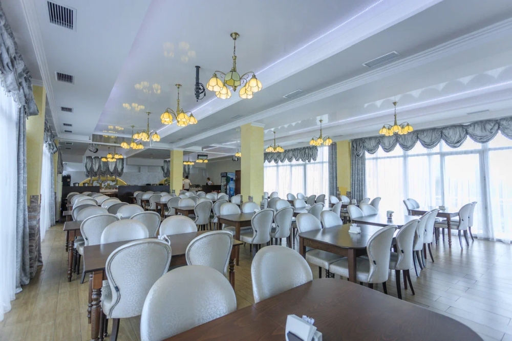 Полный пансион, по системе «шведский стол» в обеденном зале столовой, промежуточная станция питания (выпечка, пицца, гриль, пиво). Дегустация вин и крепких напитков местного производства во время ужина. При загрузке менее 20 человек услуги питания предоставляются по заказному меню.