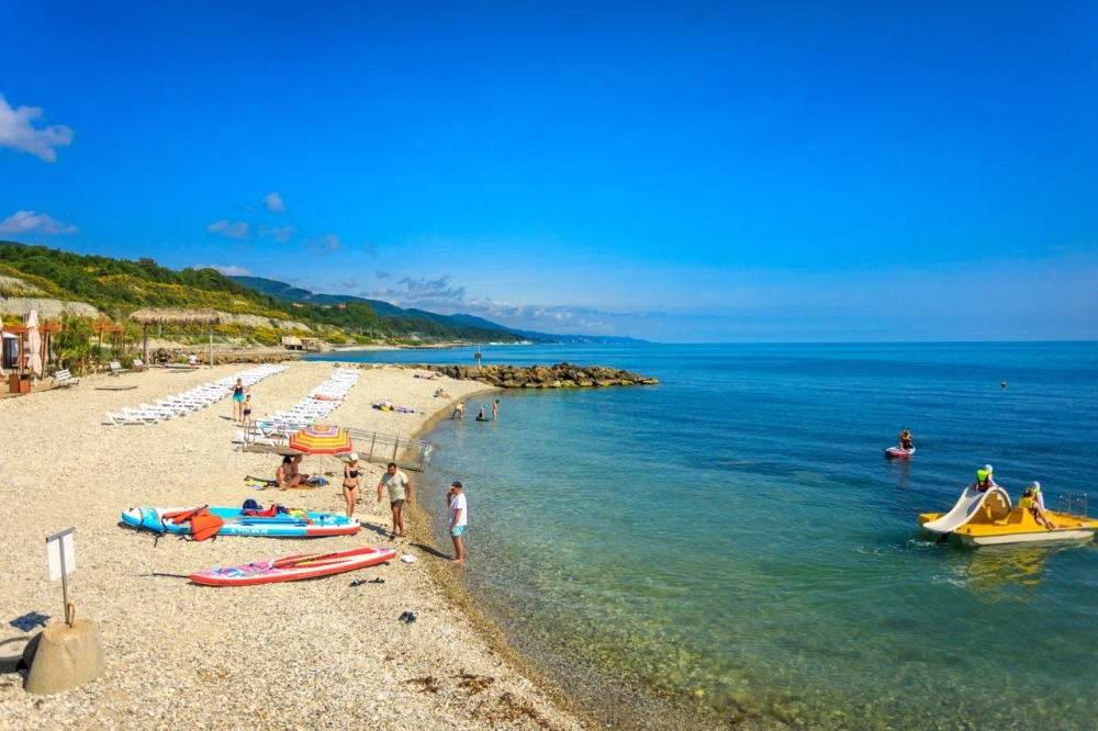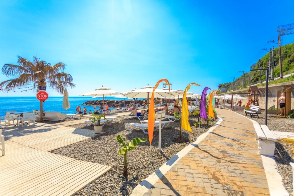Расстояние от отеля «Ардис» до оборудованного пляжа «Макопсе» около 450 метров. На территории работает медпункт, имеются зоны отдыха для детей, душевые, туалеты, шезлонги, зонтики. Прокат досок для сапсерфинга, кафе.