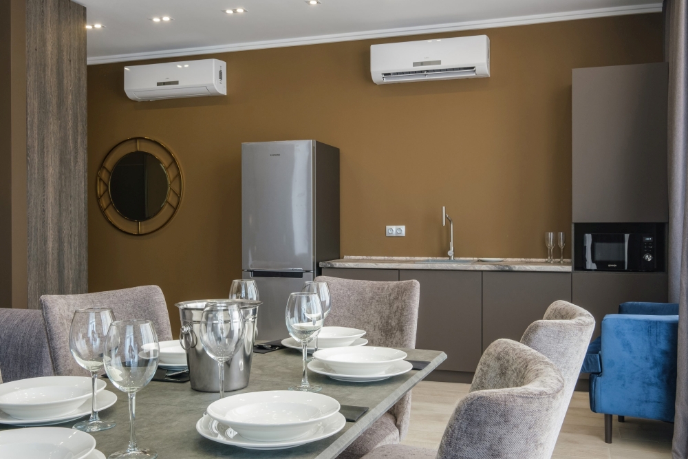 два современных восьмиэтажных зданиях, оборудованных балконами, оснащены двумя скоростными лифтами.