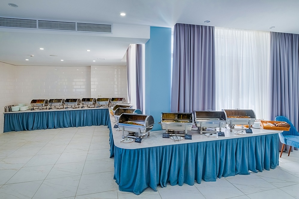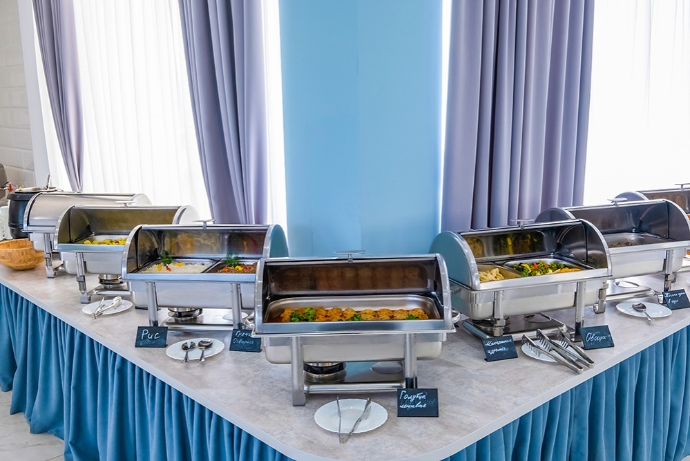 Питание гости могут приобрести непосредственно при заезде — на стойке ресепшн. Предоставляется три различных варианта: без питания, завтрак и 3-х разовое питание по системе «шведский стол»
