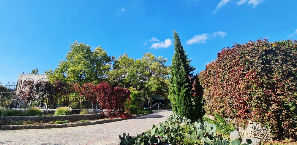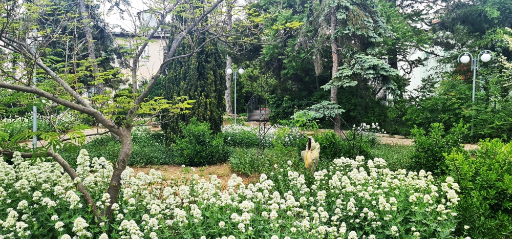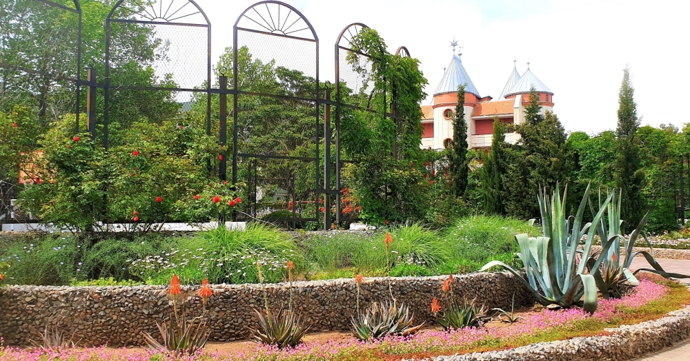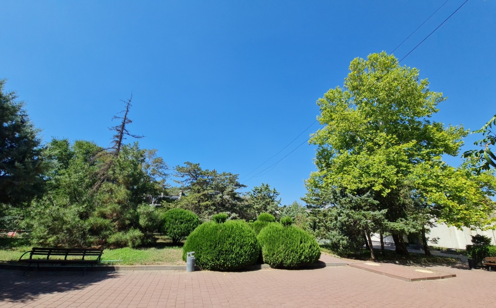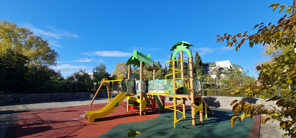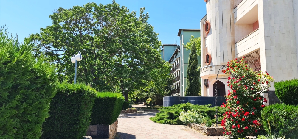 Парковая территория санатория площадью 6 га, на которой произрастает около 500 видов растений, привезенных из Никитского ботанического сада.