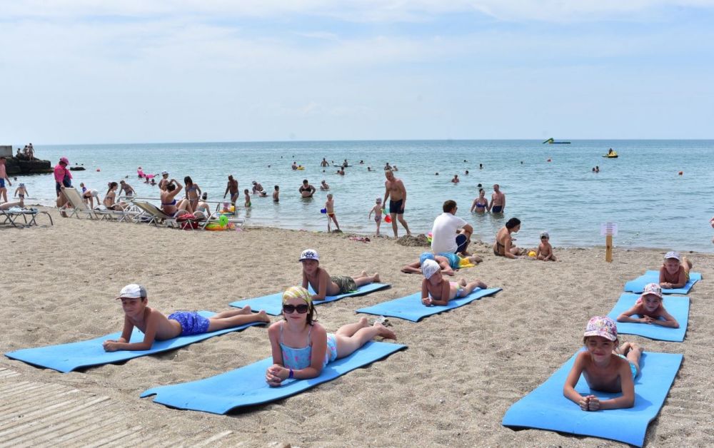 Отдельный пляж с зонтиками, шезлонгами, султан-палатами, душевыми, полотенцами, душевыми, туалетами и спасательной станцией. Пляж песчаный, 50 метров от корпуса до пляжа. На пляже работает бар, открытые пляжные домики.