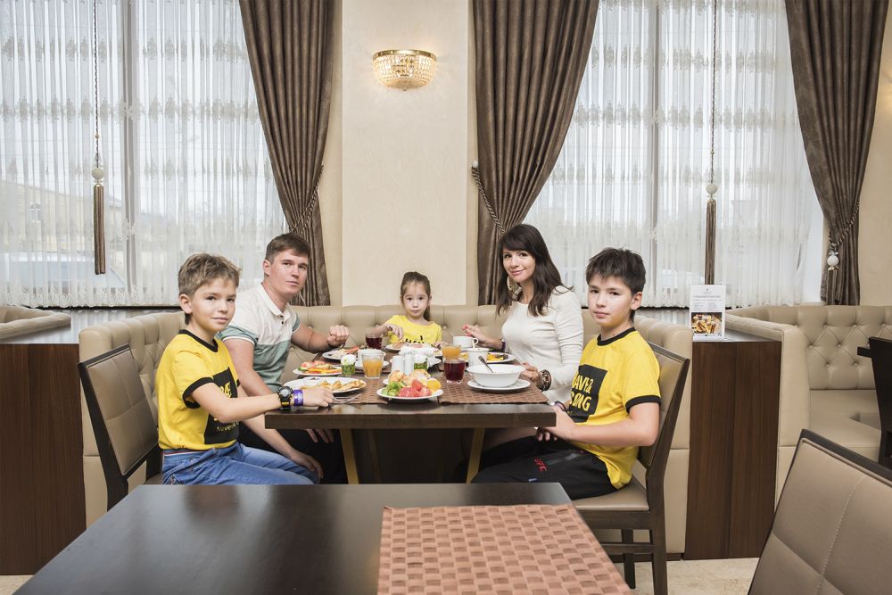 • дети до 5 лет — размещение и питание (согласно программе родителей) – бесплатно с предоставлением детской кроватки или на имеющихся спальных местах. Не более 1 ребенка на номер. На второго ребенка в номере распространяется скидка 50% от стоимости дополнительного места соответствующей программы питания. Отдельное гарантированное дополнительное место за плату – 50% от стоимости дополнительного места соответствующей программы питания