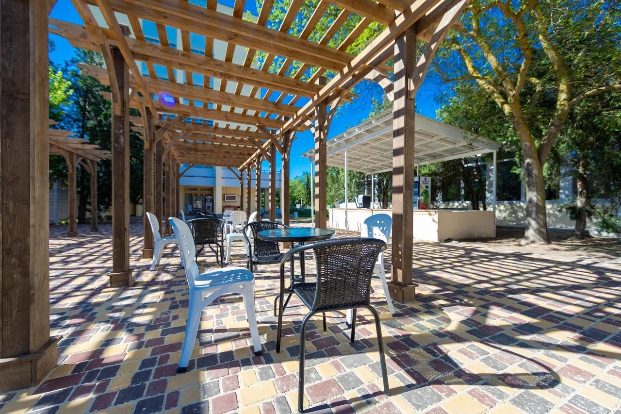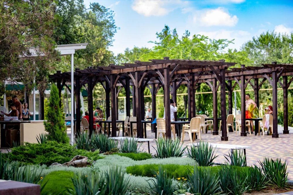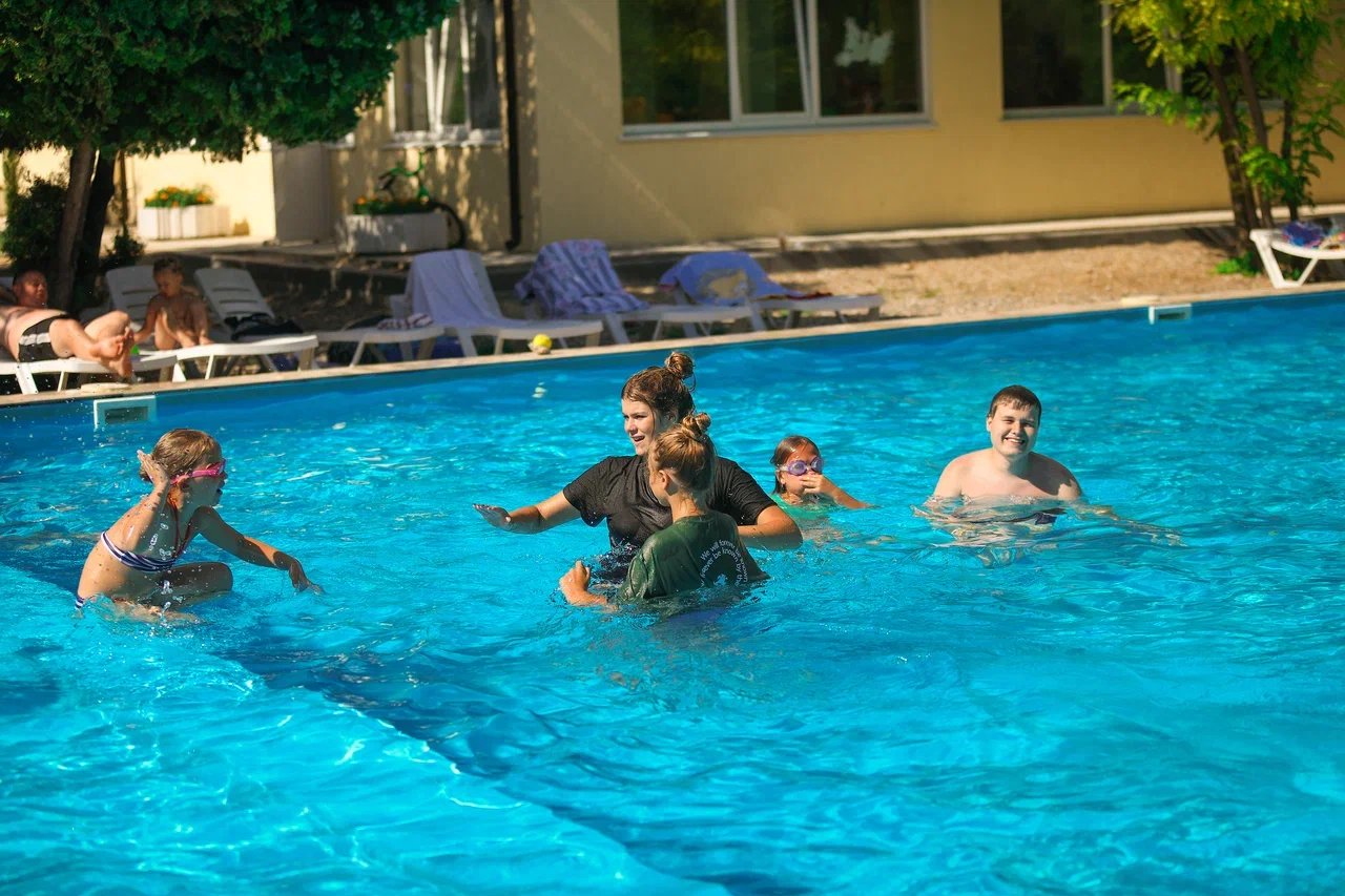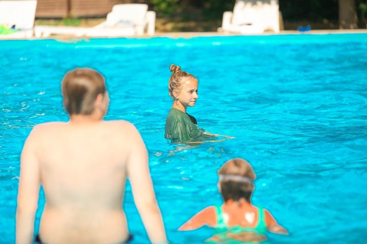 Открытый бассейна. В систему «Все включено» отеля «Family Resort» входит услуга пользования открытым бассейном. Бассейн имеет современную систему отчистки и естественный подогрев. На площадке рядом с бассейном в тени деревьев для гостей предусмотрены зоны отдыха с шезлонгами. Бассейн разделён на три зоны: