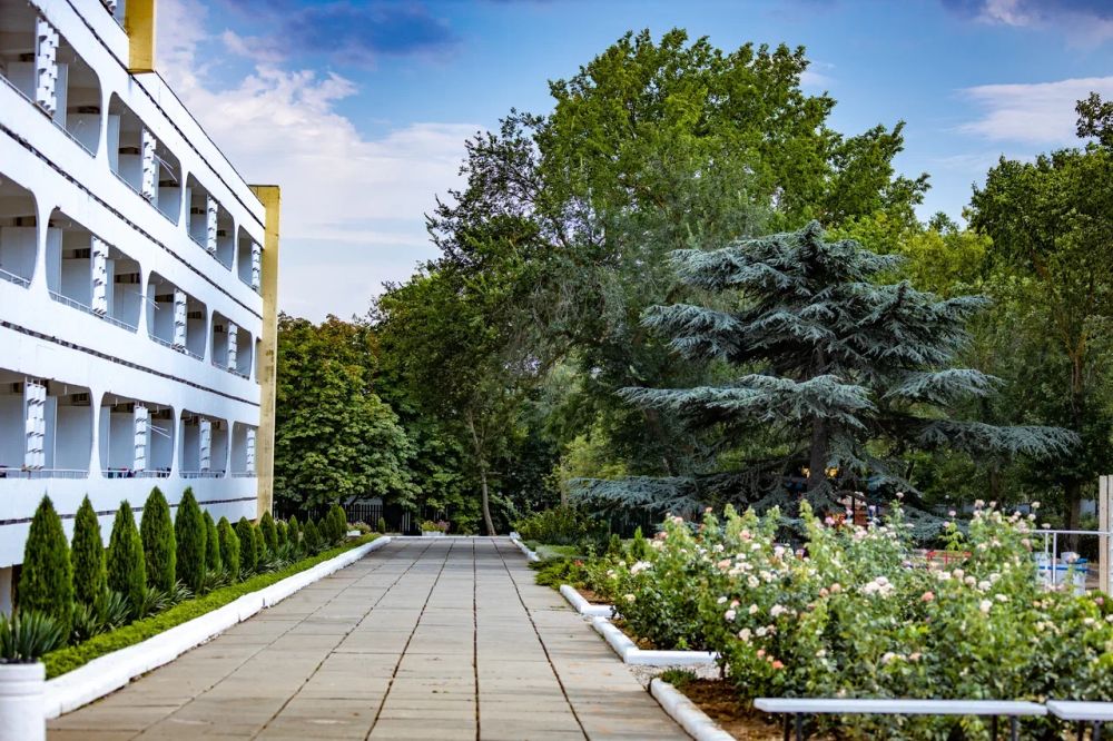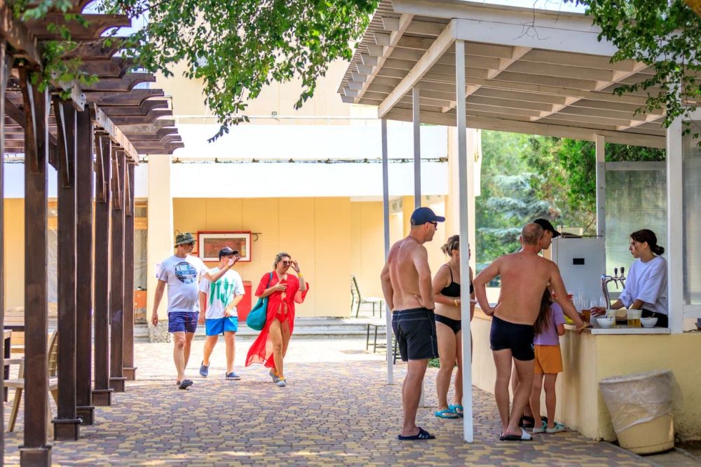 Отдыхали в августе 2023. Вполне достойно. Персонал отзывчивый и доброжелательный. Ежедневная уборка.Питание без изысков, но все свежее и достаточно вкусное. Овощи фрукты постоянно. На пляже конечно проблема с лежаками под навесом, много народа приходит просто с улицы. В бассейне нет лесенок для входа и выхода. Вносит неудобство отсутствие перегородок на лоджиях между номерами. Поставить перегородки из поликарбоната я думаю не составит большого труда, но комфортность проживания явно улучшится. На территории постоянно работают рабочие садовники, но состояние газонов и дорожек желает лучшего. В целом проживание за эти деньги видимо соответствует цене. Большой плюс- это тихий район города,практически без движения транспорта и шаговая доступность пляжа. Вода на пляже с утра имеет тенденцию к образованию пены, видимо откуда то наносит сбросы очистных, потом нормально.