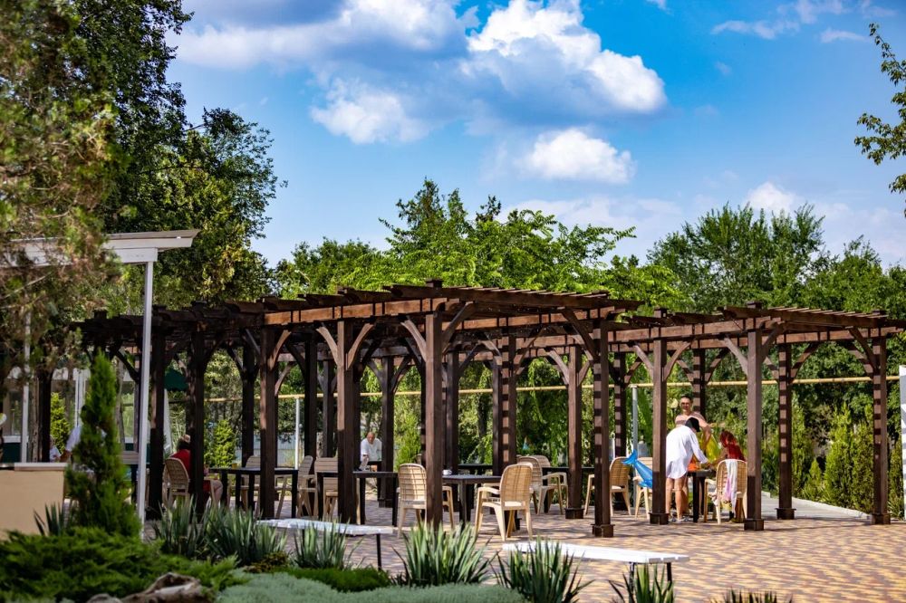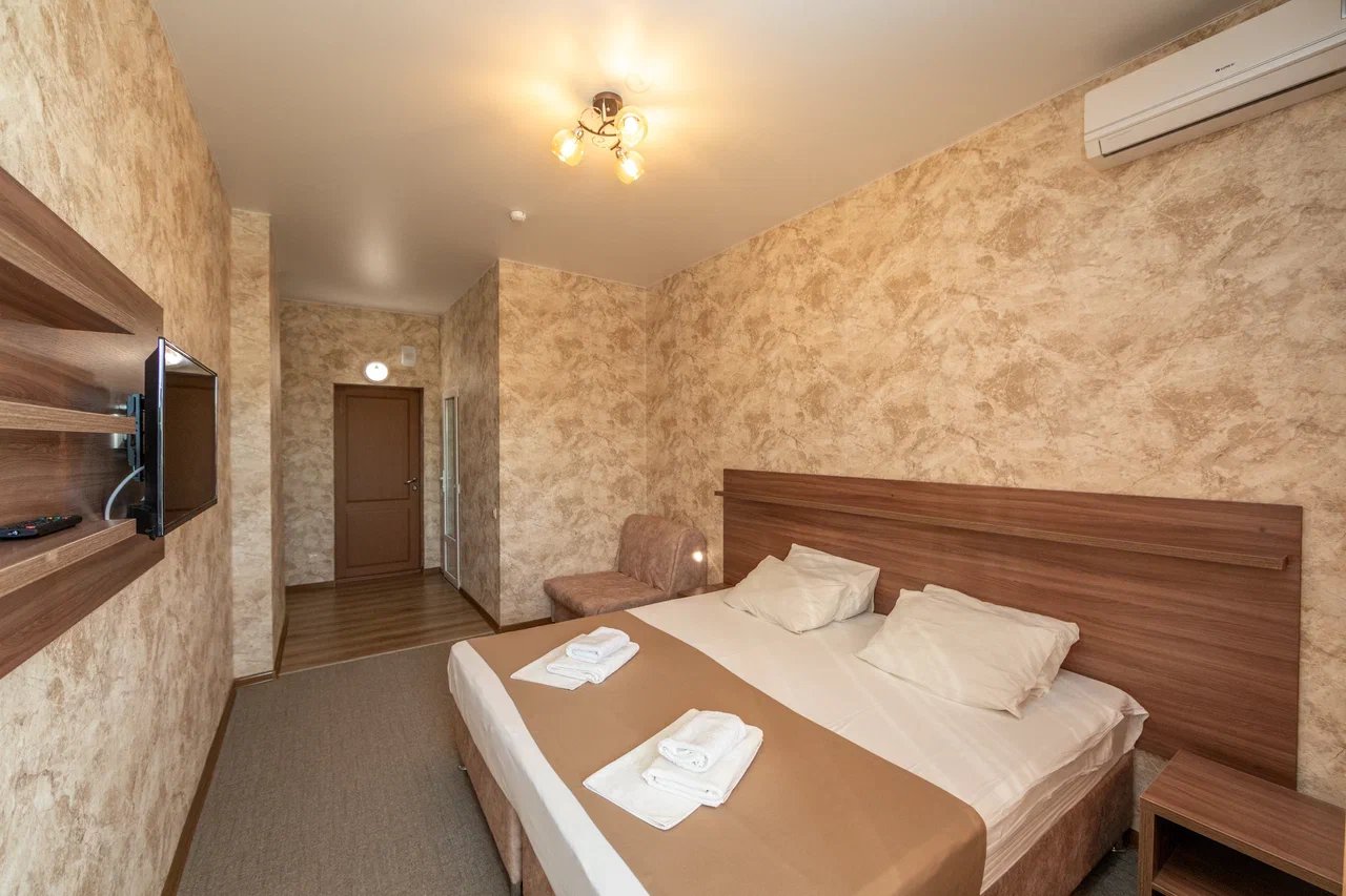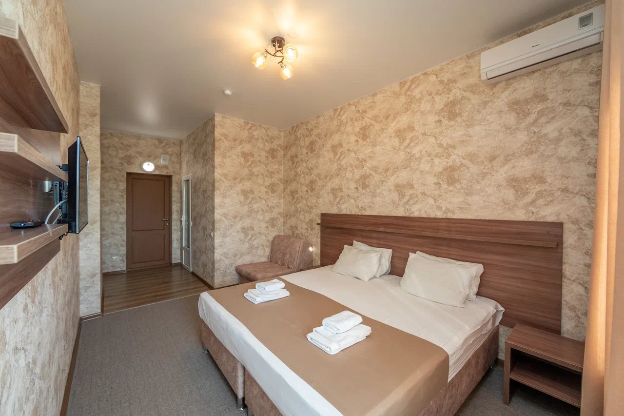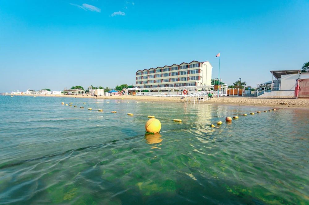 Отдыхали с подругой в июне в этом отеле, впечатления восхитительные. Много где доводилось отдыхать, в Крыму где только не были, но в Евпаторию не ездили, почему-то думали, что там что-то типа Анапы, детский курорт. Сейчас жалеем, что не ездили,в июне народу было мало, море было вначале прохладное, но такого чистого шикарного моря мы не видели нигде. Дно потрясающее, чистое, для любителей плавать с маской самое то. Гостиница уютная, довольно большая, номера ничем не уступают Турции, один в один, всё что нужно есть. Единственный маааленький минус это балкон на два номера разделённый сушилкой, но это особенности постройки и особо нас не напрягало. Очень хороший, вежливый персонал, любая просьба выполнялись мгновенно, мы попросили дополнительные подушки, выдали без вопросов. Кабельное телевидение, вайфай. Всё на отлично.Уборка каждый день, смена белья раз в три дня. В уборной вся сантехника новая, шампкуни, бальзамы. Даже полотенца с вытканными логотипами отеля)) Шведский стол в отдельно стоящем здании, сотрудники дежурят и если что-то заканчивается, тут же приносят новую порцию. Еда разнообразная, есть всё, каши, супы, большой выбор овощей и салатов, вторые и гарнира на любой вкус. Чай, зерновой кофе. На ужин вино. Территория отеля вся благоухает, очень ухоженная, в цветах, есть много локаций для фотозон,приятно даже просто на лавочке посидеть, бассейн на территории, очень понравился, есть мелкое отделение для малышни. Гостиница находится в Санаторном районе, где практически нет жилых домов, одни отели и санатории, народа не очень много, очень спокойно, тихо, набережная огромная, чистая , на пляже для жильцов нашего отеля лежаки бесплатные. Ездили на центральный пляж ,на машине 5 минут, (заказывали такси Максим,150 рублей в среднем по городу),вот там движуха, рестораны, кафешки на любой вкус и кошелёк, музыканты, экскурсии, лебеди!!!прямо в море плавают! Город, как и отель оставил только хорошие впечатления, это единственное место отдыха, откуда не хотелось уезжать. Спасибо огромное персоналу отеля, желаем вам мирного неба, чтобы скорее стабилизировалась обстановка и полетели к вам самолёты, ждите нас обязательно в следующем году. Удачи вам и процветания.