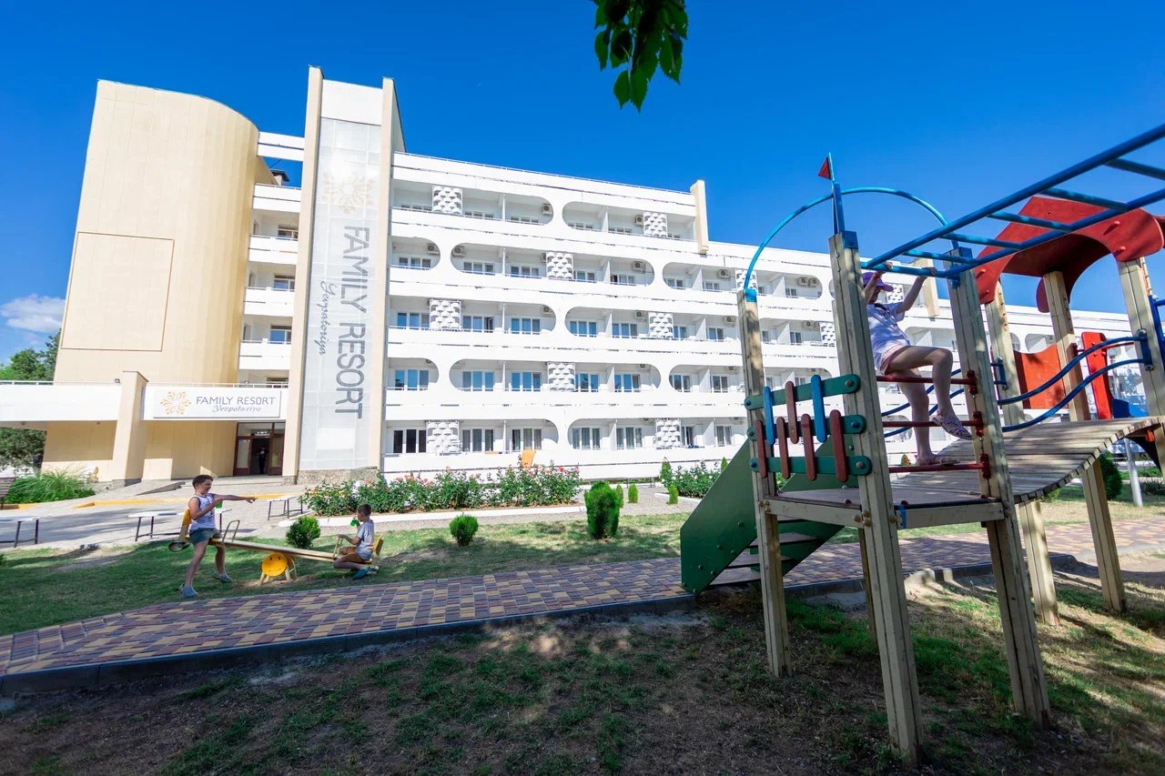 Отель «Family Resort» бывший СКК «Гелиос» – это уникальный комплекс услуг, нацеленный на приятный и безопасный отдых, включая оздоровление для семей с детьми в уютной обстановке, с высоким уровнем сервиса. Находится в центре парковой курортной зоны Евпатории, в стороне от городской инфраструктуры развлечений. Само название говорит о том, что это место предназначено для семейного отдыха. Однако отдыхать тут можно и в одиночку, поскольку комфорт, уют и гостеприимство этого комплекса создают необычайную атмосферу семейного очага и спокойствия.