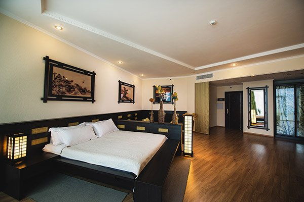 Номер «Японское море»: Дизайнерский полулюкс Design Deluxe Японское море выполнен в азиатском стиле, в лаконичном эко-дизайне. Здесь преобладают теплые природные оттенки и элементы декора, характерные для манящей и загадочной Страны восходящего солнца. Кстати, это номер с видом на море, поэтому любоваться рассветами и закатами вы можете прямо из своего окна.