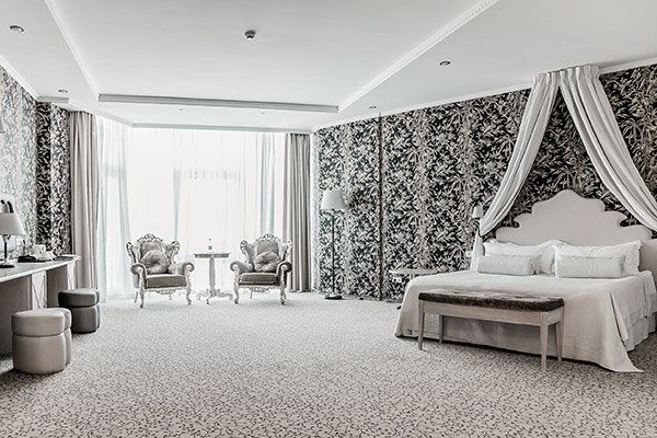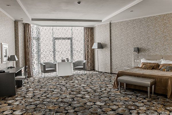 Для Вашего комфортного пребывания мы предлагаем просторные номера категории Design Deluxe площадью от 62 м2. Вашему вниманию предлагаются 7 тематических номеров с видом на море: Красное море, Карибское море, Охотское море, Желтое море, Белое море, Свадебный. Номера укомплектованы двуспальной кроватью king size (180х200 см). Дополнительных мест нет.