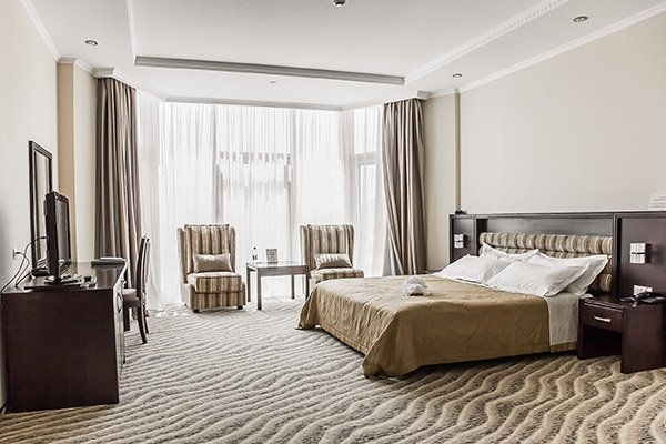 Номера Superior King укомплектованы двуспальной кроватью king size (180х200 см), комфортабельным раскладным диваном и креслами: