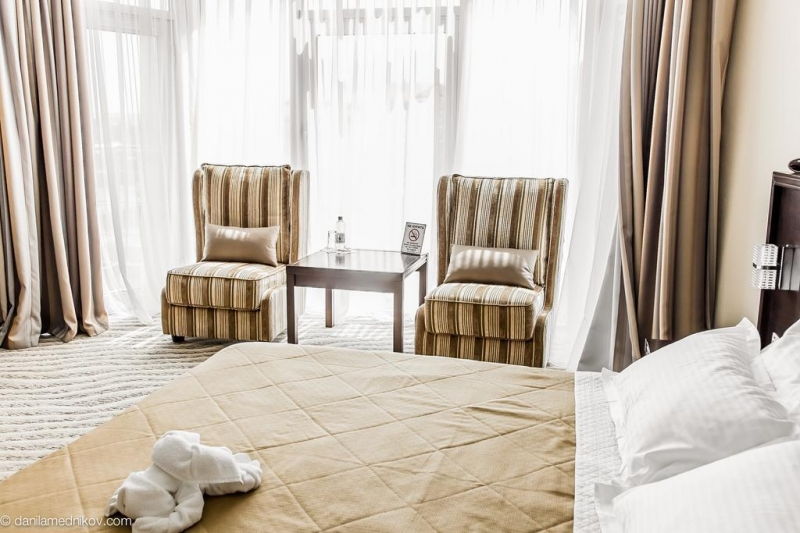 Данный отель порекомендовали родственники. Здесь довольно атмосферно и очень ухоженно. Персонал работает как надо. Порадовал тот факт, что здесь есть детская комната где очень хорошо уделяют внимания детям. Кухня здесь очень изысканная, всё свежее и недорогое. В общем, остались положительные эмоции. Буду рекомендовать друзьям и родственникам за такой уровень.