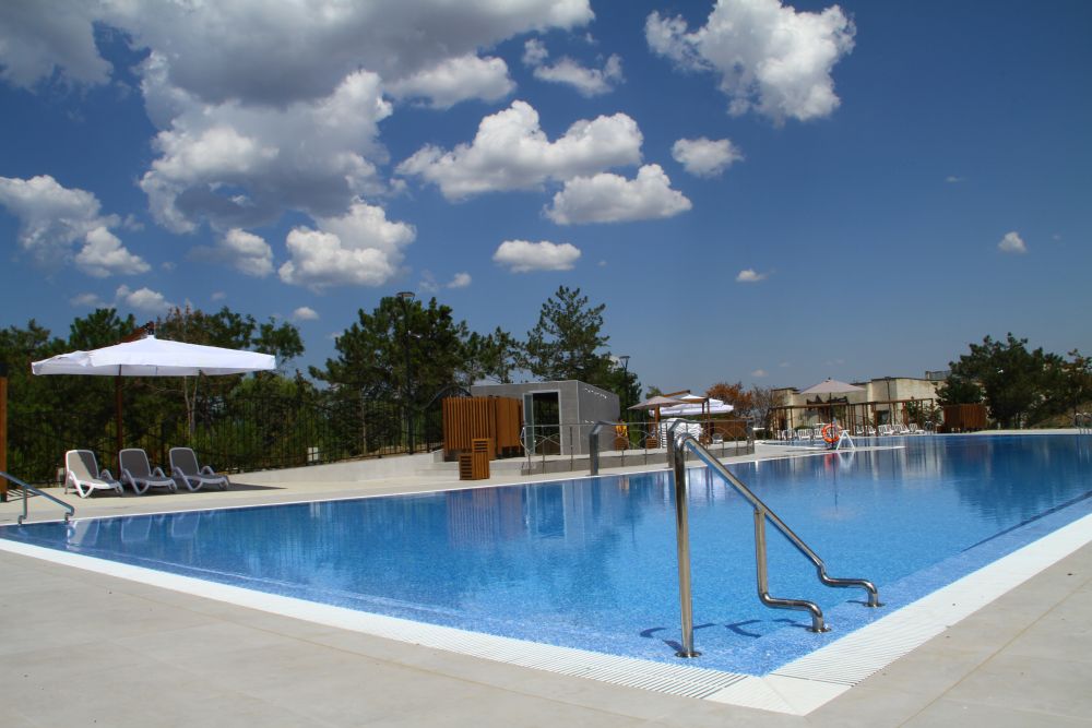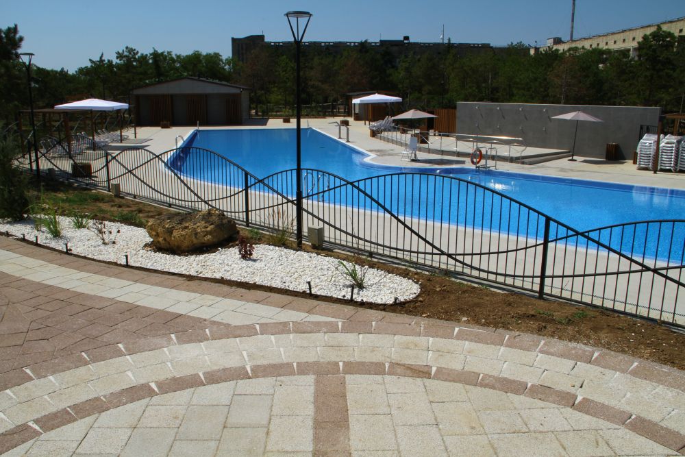 Для удобства пользования бассейном предусмотрены: теневые навесы, фонтанчики с питьевой водой, души,